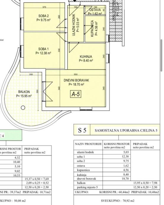 Pripada mu jedno vanjsko parking mjesto od 12,50 m2.
