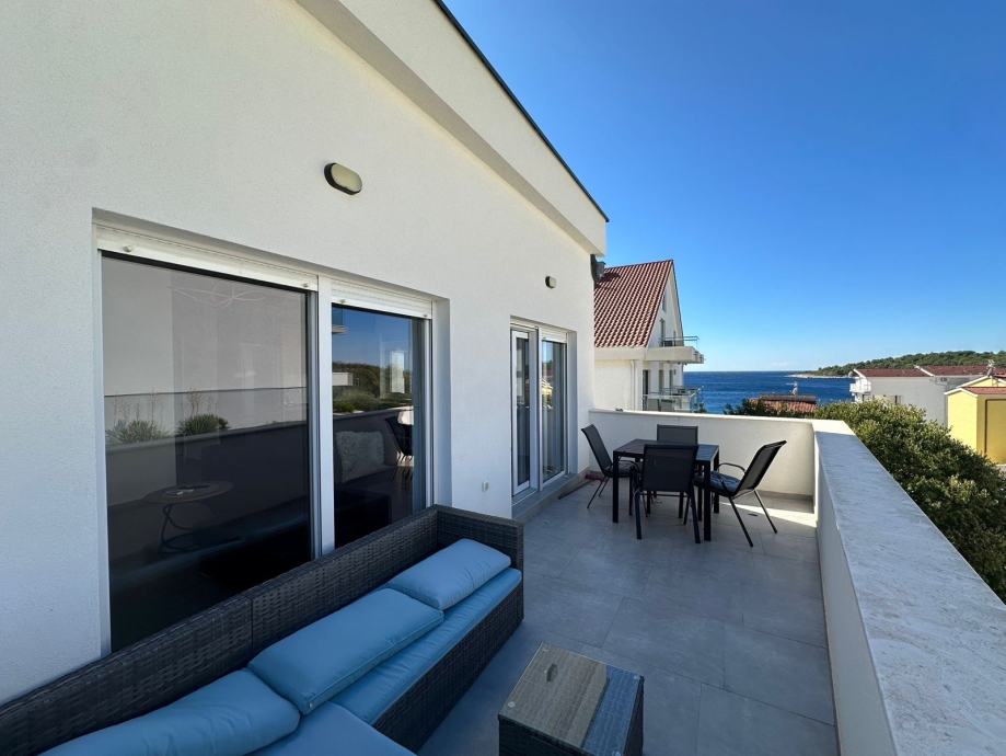 Nalazi se svega 30m od plaže, s prekrasnim pogledom na more i idealnom pozicijom za miran život ili investiciju u turistički najam.